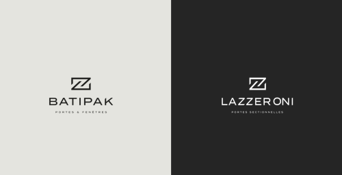 Le nouveau symbole de Batipak - Lazzeroni a été imaginé à partir du double “z” de Lazzeroni. Le jeu de ces éléments graphiques qui fonctionnent ensemble, permet d’illustrer l’activité portes et fenêtres de ces deux entreprises. Le symbole véhicule les valeurs d’innovation, de précision et de modernité de Batipak - Lazzeroni.