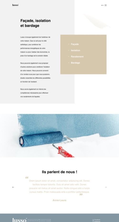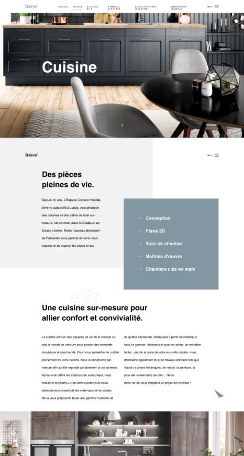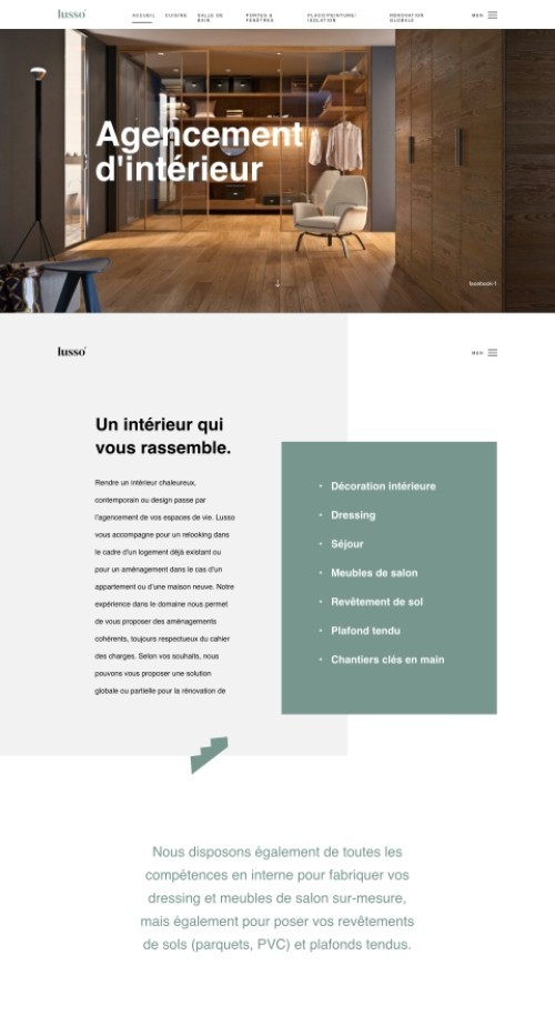L'agence Publipresse a réalisé le site Internet vitrine de Lusso agencement, une entreprise qui, depuis sa création, s'est développée en Suisse, à Yverdon. Un des enjeux du site Internet était de mettre en avant tout l'univers Lusso à travers les photos présentées dans un concept graphique soigné.